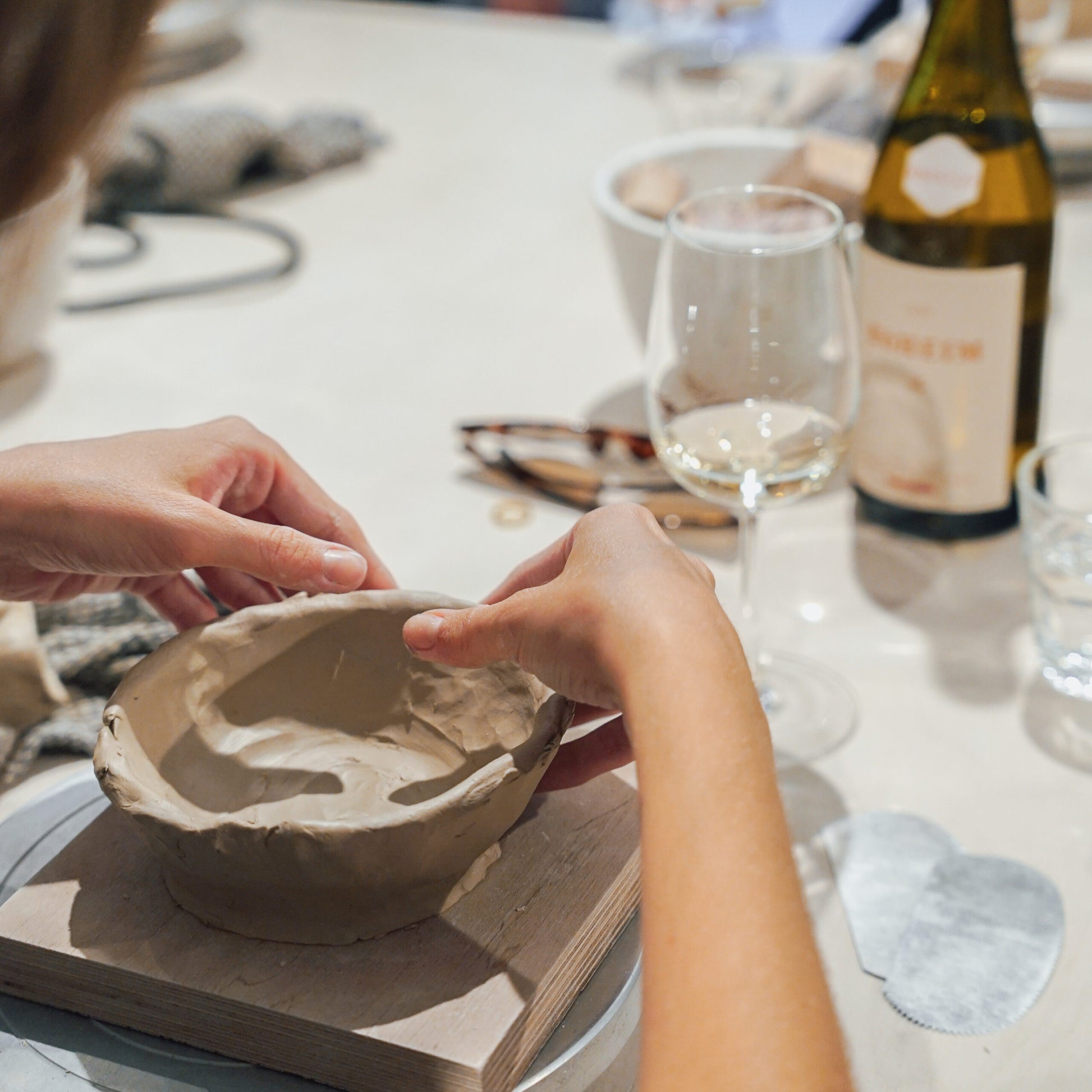 Na warsztatach zostaniesz poczęstowany białym winem, które umilą Ci twórczy czas przy glinie.