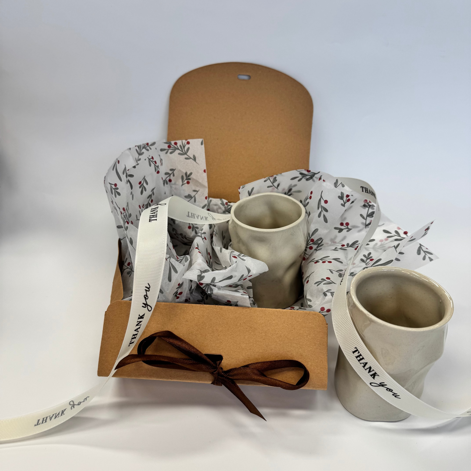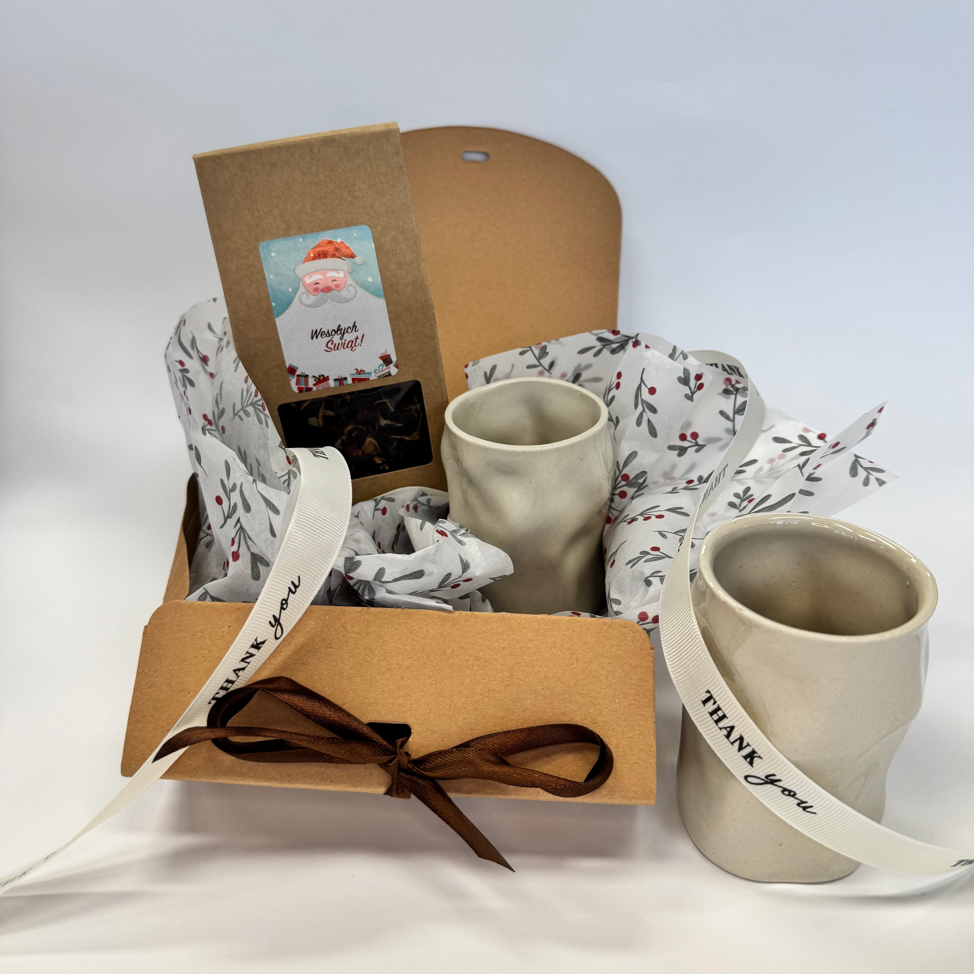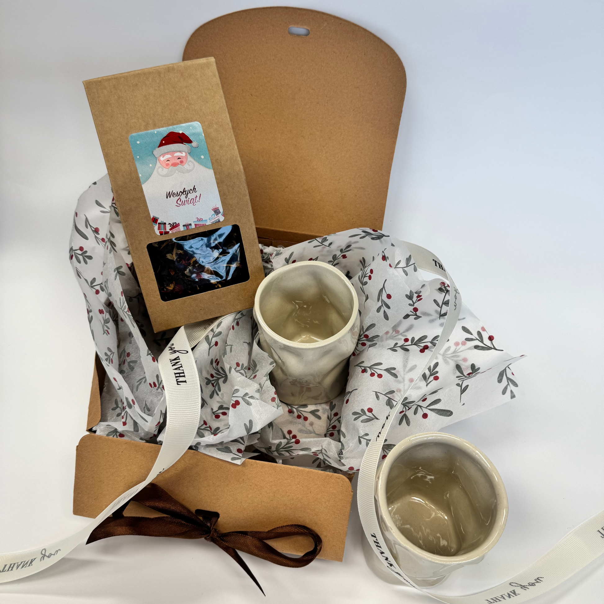 Zestaw prezentowy z dwoma pięknym czarkami "rzeźba". W zestawie jest herbata zimowa.