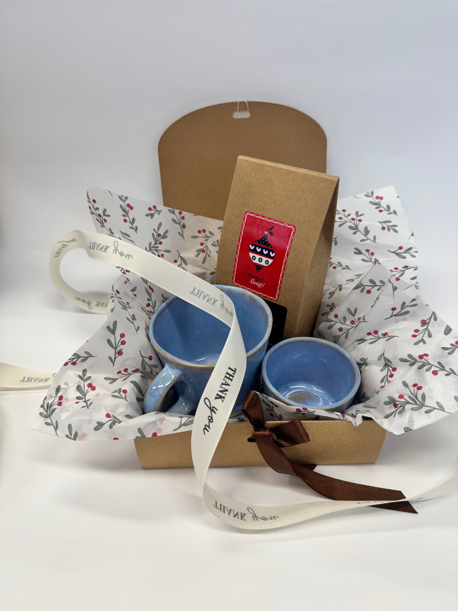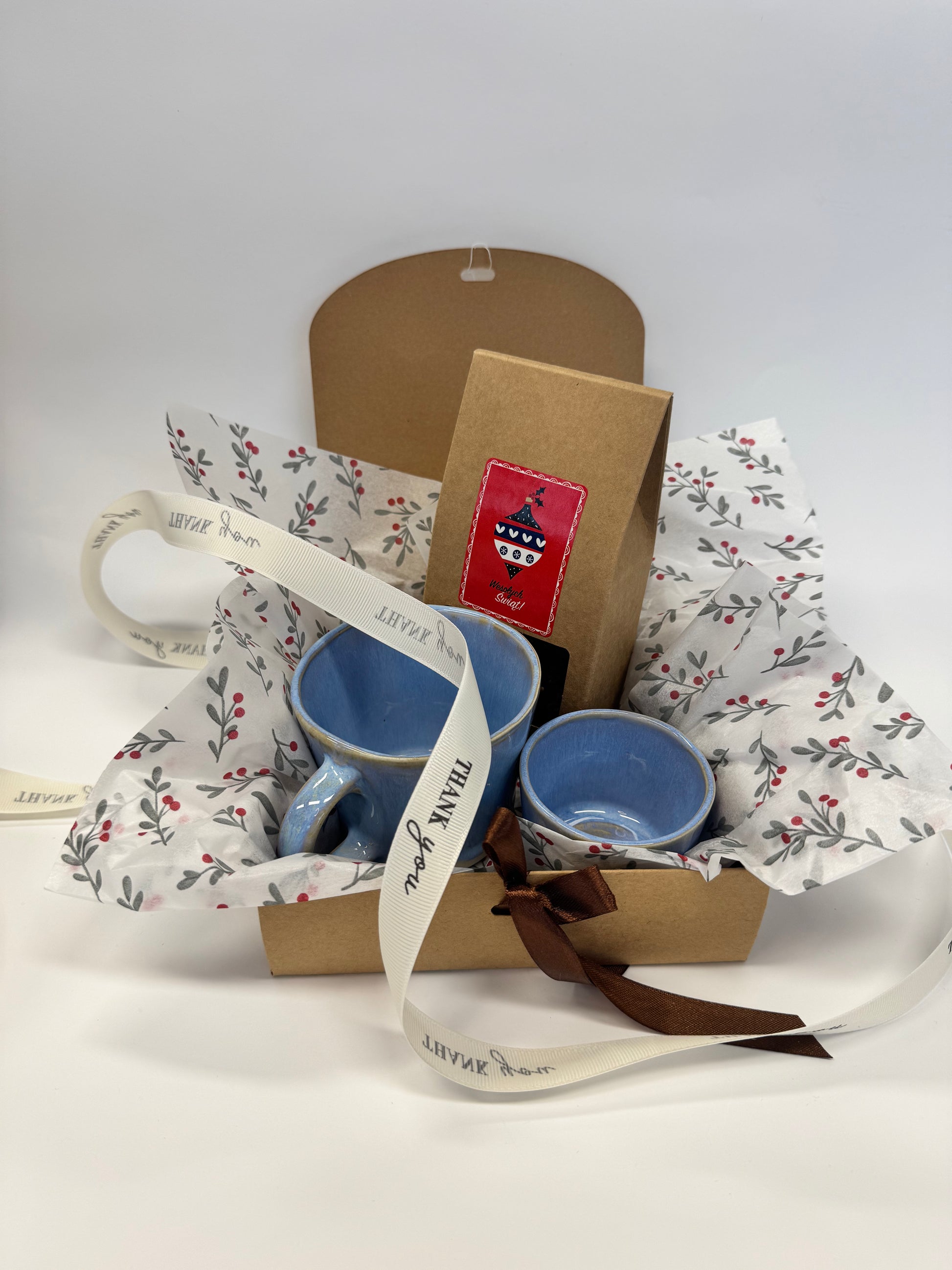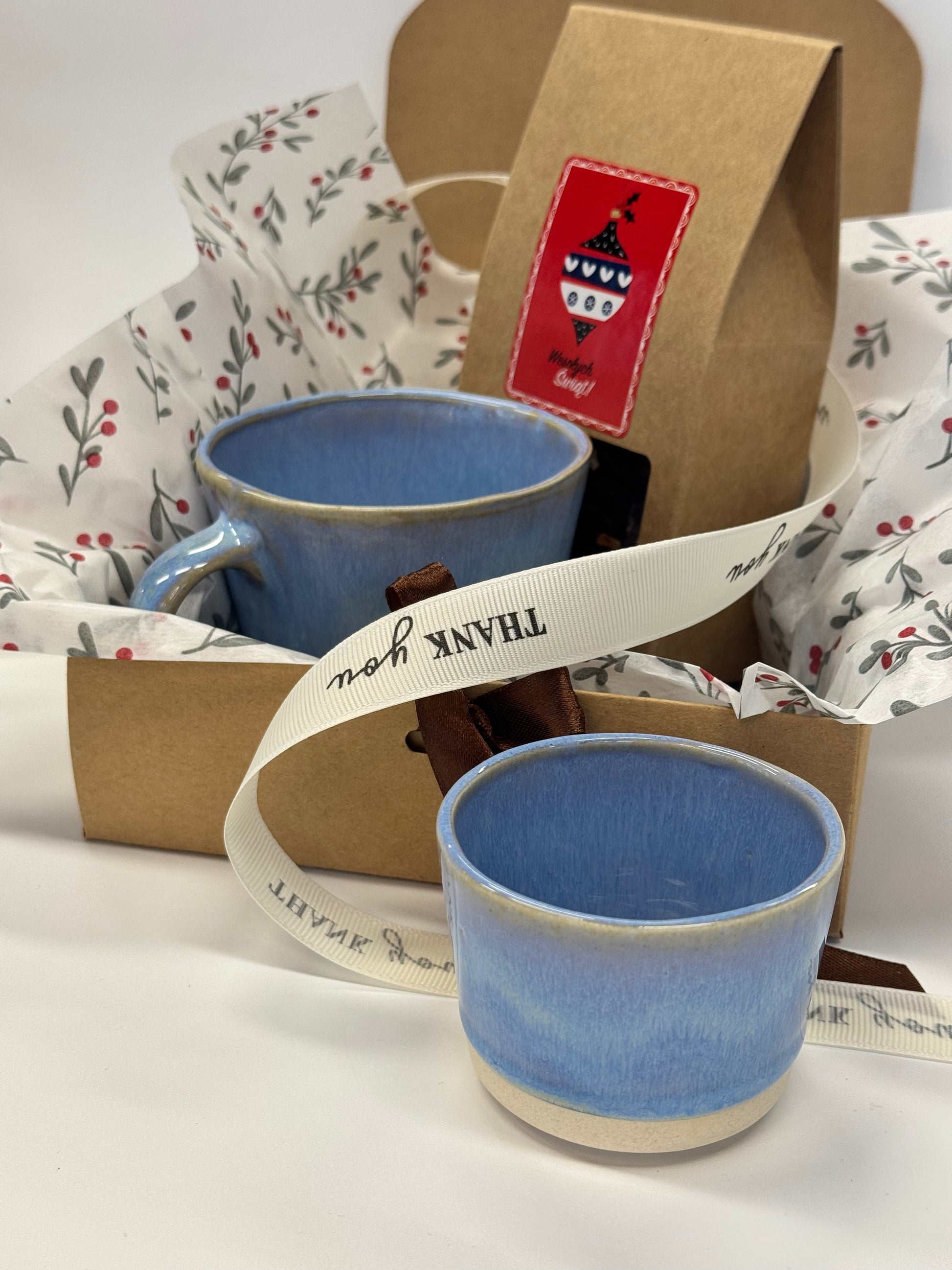 Zestaw prezentowy ze świąteczną czarką z motywem wstążeczki. W zestawie jest herbata zimowa.
